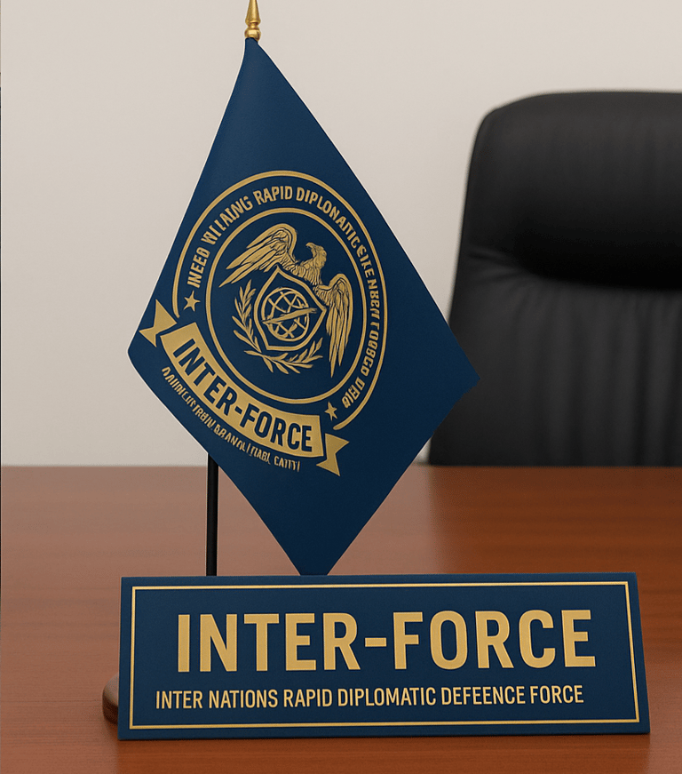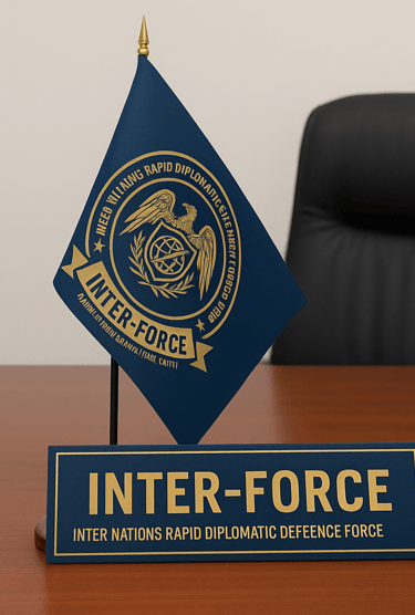 Inter-Force is an International Quasi-Judicial Mechanism and Civil Defence Council, allied with UN, EU, GCC, AU, NATO, SAARC, Commonwealth, Arab League, ICJ, ICC, INTERPOL, EUROPOL, and AUPOL, fostering global law enforcement and security cooperation.